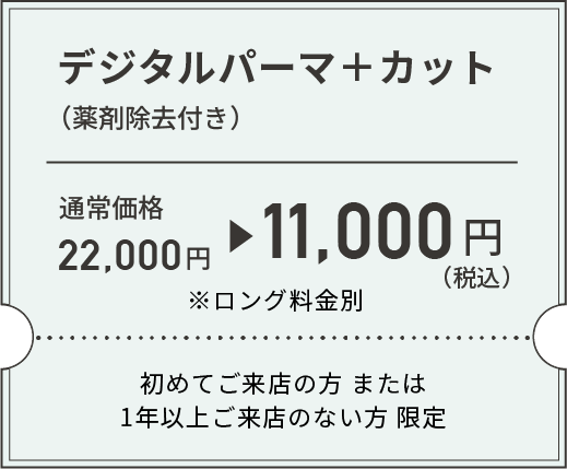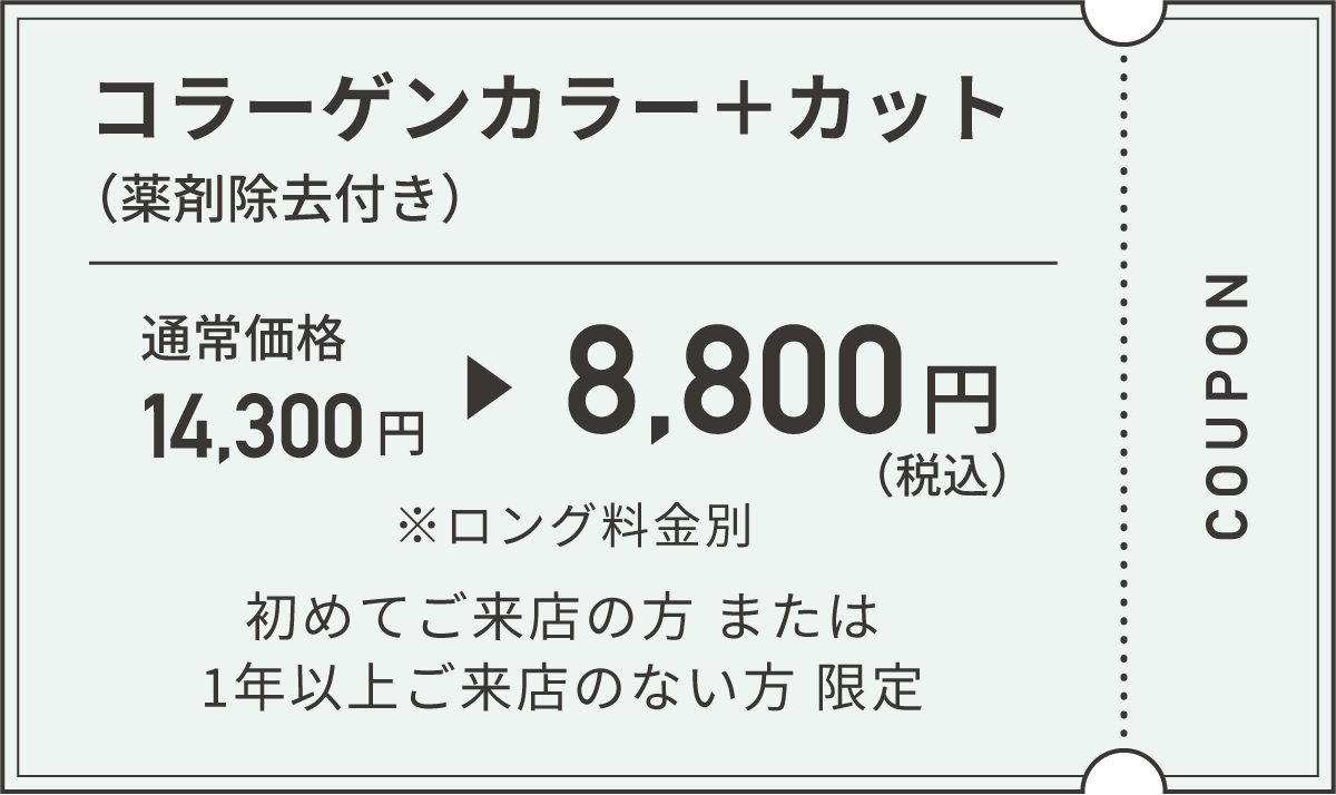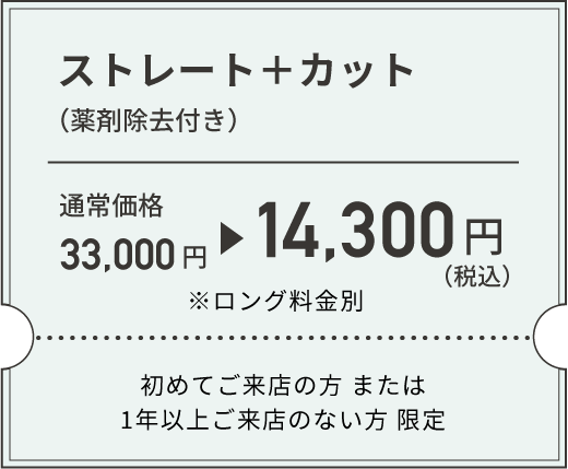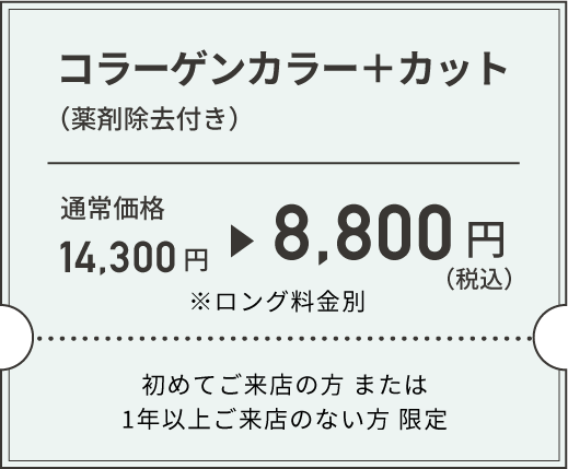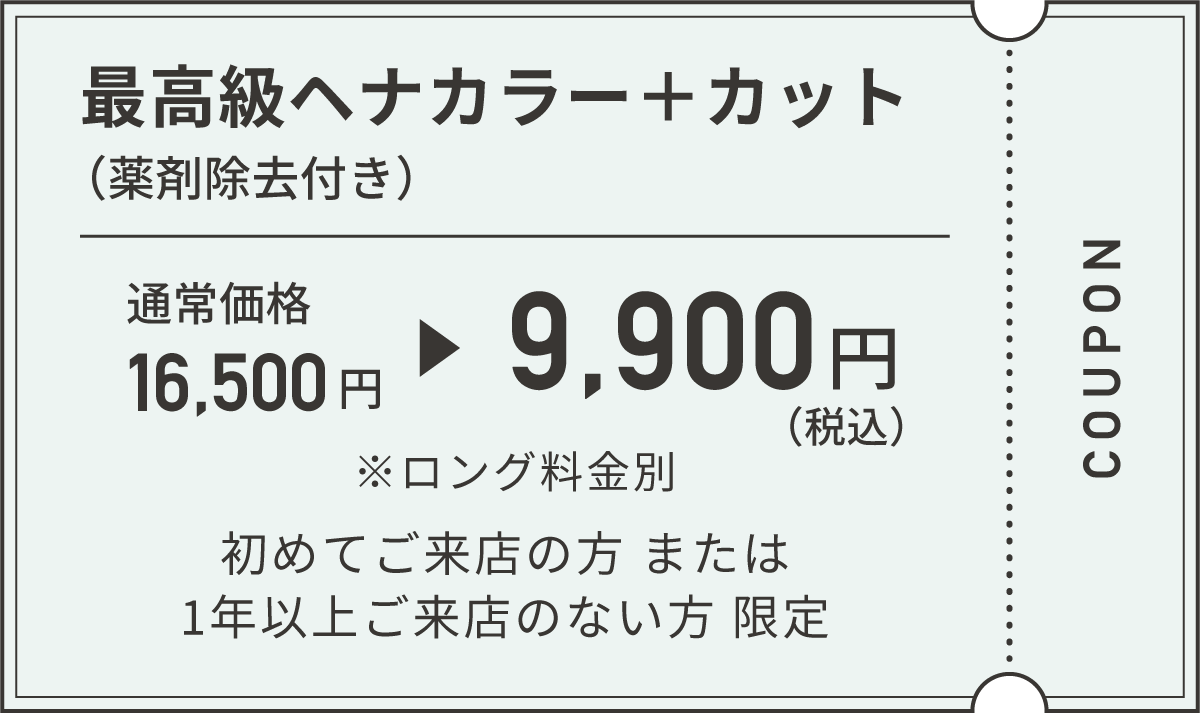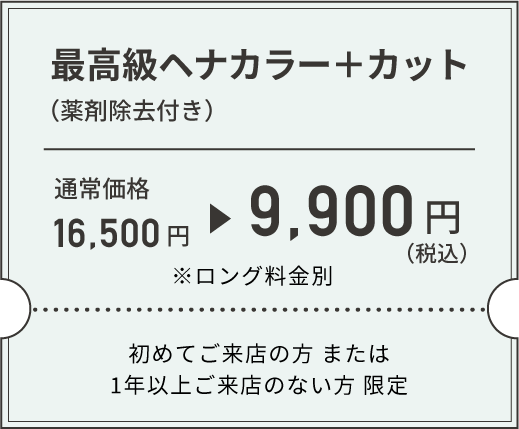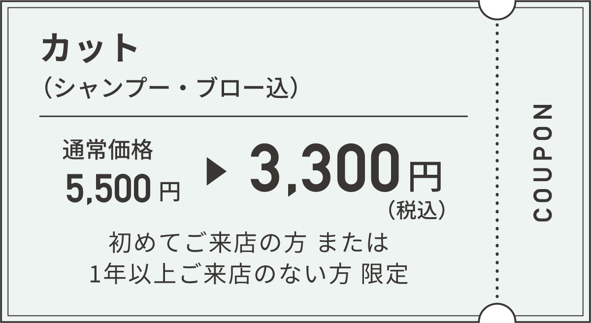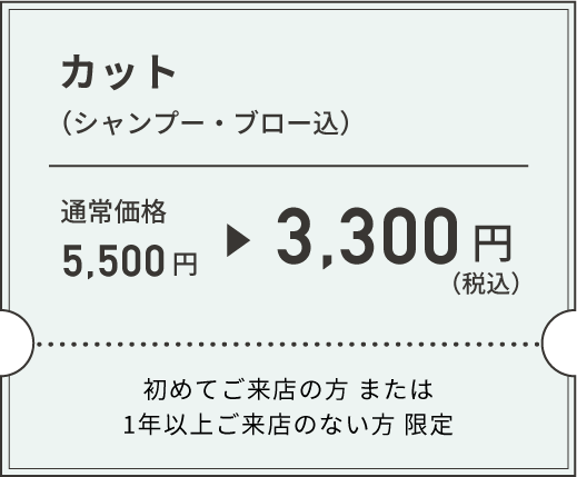 初めてご来店の方または1年以上ご来店のない方に、限定クーポンをご用意しております。